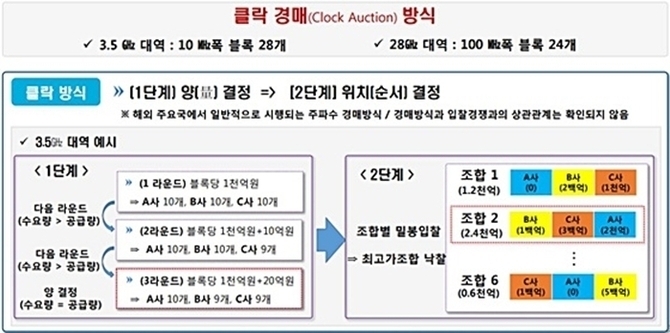 아울러 15일 열리는 주파수 경매는 한 사업자가 가져가는 주파수 블록 개수를 결정하는 1단계(클락입찰)에 이어 블록 위치를 결정하는 2단계(밀봉입찰)로 나눠 진행된다.