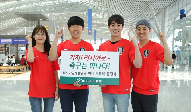 하나 리포터는 대한민국 축구 국가대표팀 및 K리그 공식 후원은행인 하나은행이 월드컵을 맞아 러시아 현지에 파견하는 원정응원단이다. 통합 멤버십 ‘하나 멤버스’로 한 달간 진행된 모집 이벤트를 통해 총 4명의 고객이 응원단에 선발됐다.