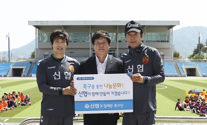 (조세금융신문=윤봉섭 기자) 신협중앙회(회장 김윤식)가 연예인 축구단 ‘일레븐’(단장 최수종)과 지난 6월 16일, 하남종합운동장에서 나눔문화 활성화를 위한 친선대회를 개최했다. 또한, 스포츠를 통한 나눔 활동을 꾸준히 펼치고 있는 신협중앙회는 이날 축구용품 후원을 위한 협약도 체결했다고 밝혔다.