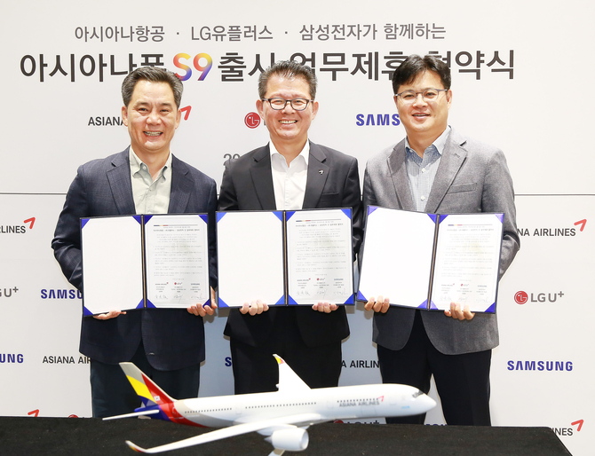 한편, 이날 서초동 삼성전자 딜라이트 전시관에서 열린 업무제휴 협약식에는 김광현 아시아나항공 여객마케팅담당 상무, 이한형 삼성전자 한국총괄 B2B 영업팀 상무, 양철희 LG U+ 특판영업1담당 상무가 참석했다.