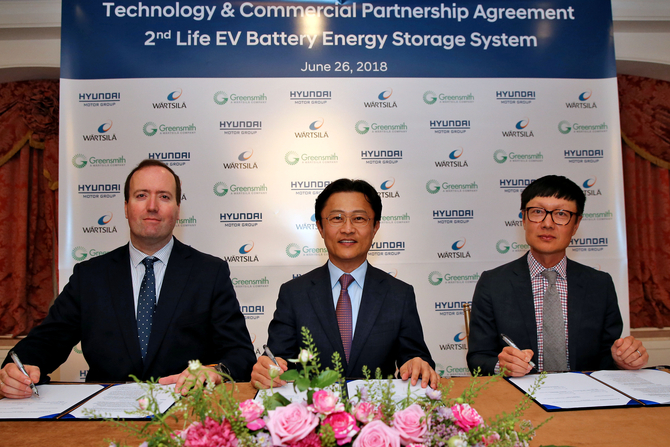 이날 현대차그룹은 재활용 배터리 ESS 개발의 가속화 및 사업성 확보 차원에서 세계적인 에너지기업인 핀란드의 ‘바르질라(Wärtsilä)’와 전략적 파트너십 협약을 체결했다.