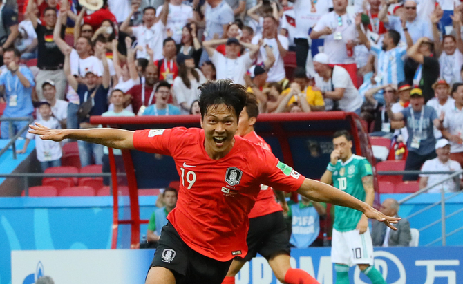2018 러시아 월드컵 16강 진출에 도전한 한국 축구가 김영권과 손흥민의 후반 추가시간 '극장골'로 '전차군단' 독일을 꺾었지만 조별리그 탈락을 피하지 못했다.