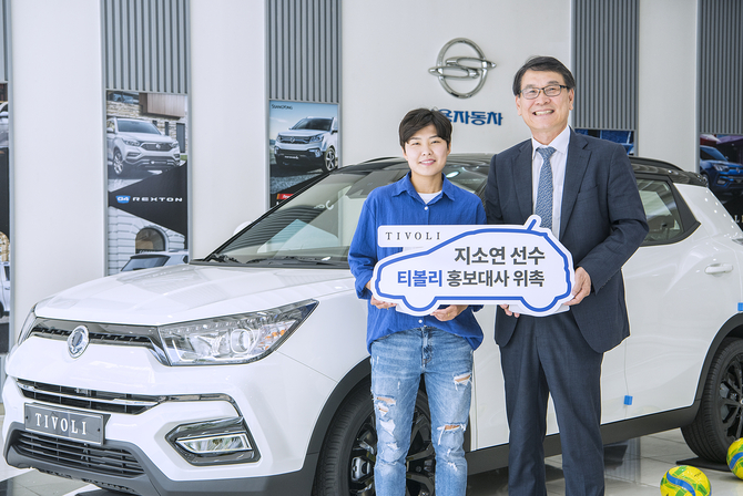 쌍용자동차는 지난 27일 플래그십스토어인 대치영업소에서 지소연 선수와 후원 협약을 체결하고 티볼리 아머 차량을 전달했다. 영국에서의 후원에 이어 이번 협약을 통해 지소연 선수는 향후 국내외에서 티볼리 브랜드 홍보대사로서 활동하게 됐다.