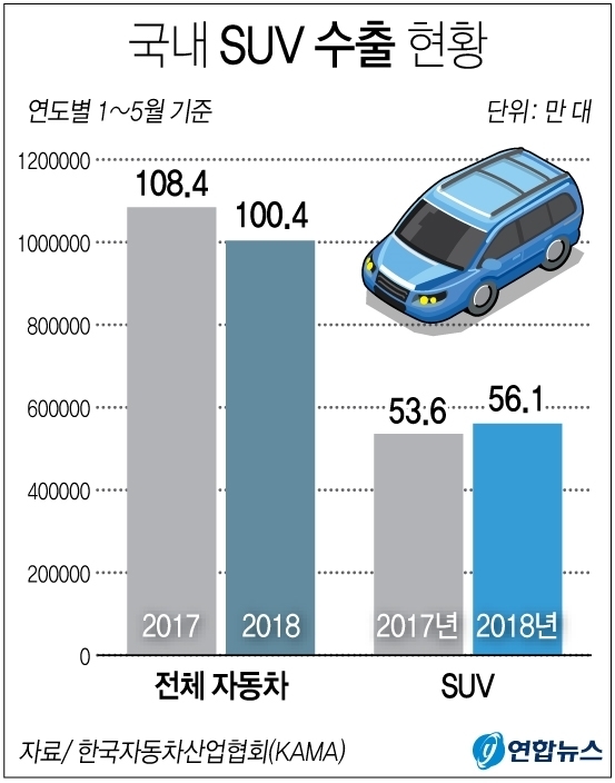 아울러 올 하반기에는 상품성이 강화된 현대차 투싼과 기아차 스포티지의 페이스리프트(부분변경) 모델이 출시될 예정이어서 SUV 수출이 더욱 탄력을 받을 것으로 예상된다.