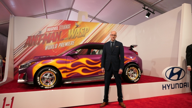 지난 25일(현지시간)에는 미국 로스엔젤레스에서 열린 ‘앤프맨과 와스프 월드 프리미어 레드카펫 행사’에서 실제 촬영에 사용된 벨로스터 앤트맨카와 양산 모델을 함께 전시하고 마블의 아티스트가 협업해 제작한 현대차-앤트맨 콜라보레이션 포스터를 공개했다.