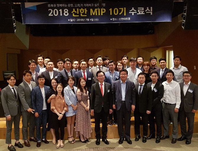 신한 MIP 10기는 총 46명으로 3월초부터 4개월 간 경제전망과 부동산 시장분석, 인사·노무·세무관리, 재무관리, 인수합병(M&A)·투자은행(IB) 투자업무 등 경영관련 이론교육을 받았다. 또한 미래 경영자가 갖춰야 할 필수적인 문화소양 프로그램 등의 과정도 이수했다. 이날 수료식 행사에는 주형환 서울대 초빙교수가 참석해 4차 산업혁명 관련 주제로 강연을 진행하기도 했다.