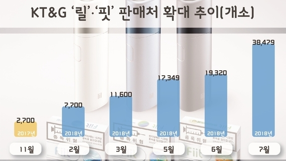 KT&G는 CU․GS25․세븐일레븐․미니스톱․이마트24 등 주요 편의점 1만9159곳에 오는 18일부터 제품을 추가 공급한다고 16일 밝혔다. 이로써 ‘릴’과 ‘핏’의 판매처는 모두 3만8479곳으로 기존보다 2배가 늘어나게 됐다.