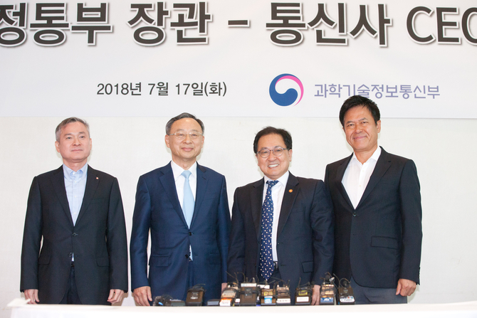 유영민 과학기술정보통신부 장관은 17일 오전 서울 여의도 매리어트 파크센터에서 박정호 SK텔레콤 사장, 황창규 KT 회장, 하현회 LG유플러스 부회장 등 이통 3사 최고경영자(CEO)들을 만나 5G 상용화를 위해 필요한 사항을 논의했다.