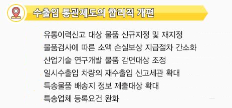 특송업체 등록 요건은 완화된다. 기존에는 외국무역선을 통한 해상 특송화물 취급만 할 수 있었지만 앞으로 외국무역선 뿐만 아니라 외국무역기를 이용한 항공 특송화물의 취급도 가능하다.