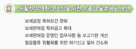 보세판매장 운영인의 업무사항 등 보고 기한도 다음달 7일까지에서 다음 달 7근무일 이내로 개선될 예정이다.