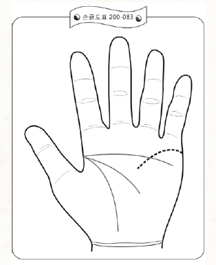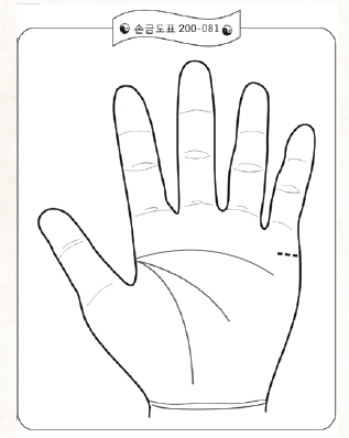 결혼선은 직선이 정상이다. 이 결혼선이 어떤 방향을 그리며 다른 손금이나 다른 언덕을 향할 때 연관된 복식 감정을 해야 한다.