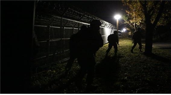 KINAC 평가원들은 특전사로 구성된 가상침입군과 함께 원자력 시설을 둘러보며 침투 경로를 선정하고 밤이 되기를 기다렸다.