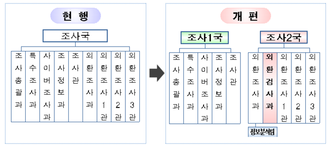 이에 따라 밀수 등은 조사1국에서, 불법 외환거래 단속은 조사2국에서 전담하게 된다.