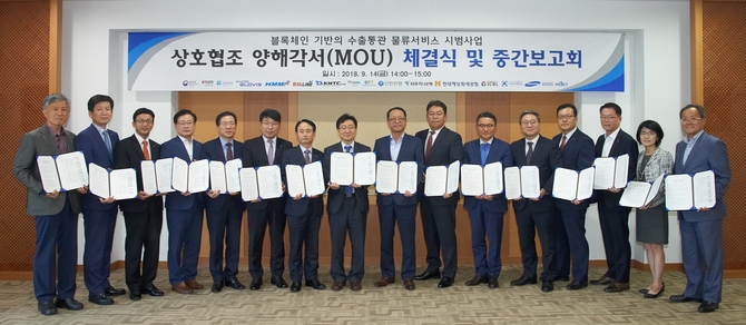 이날 체결식에서는 시범사업의 중간보고회와 블록체인 도입에 따른 스마트 계약 기반의 업무자동화, 악의적인 서류 조작에 따른 무역사기 방지 등 수출 물류 정보를 공유하는 시간도 가졌다.