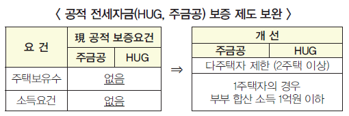 2주택 이상 보유 시 공적 전세보증 기한만기 연장도 제한된다. 단, 만기 전에 1주택을 제외하고 나머지 집을 처분하면 만기연장이 허용된다.