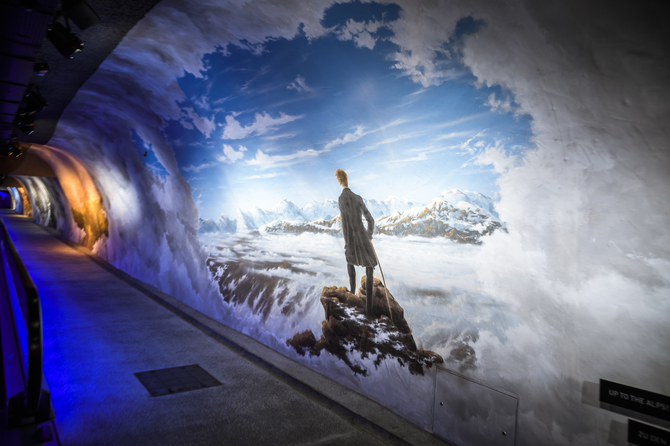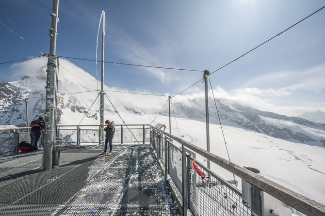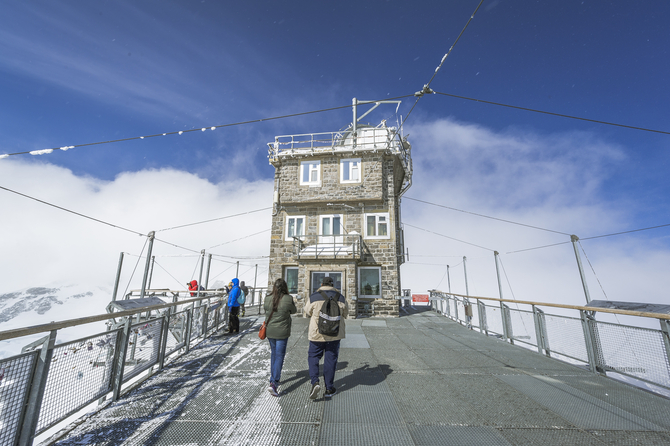 아이스미어 역을 마지막으로 목적지인 융프라우요흐에 도착한다. 열차에서 내려 출입구를 통과하면 로비처럼 보이는 곳에 도착한다. 티켓을 구매하면 열차권과 함께 구매 조건에 따라 여러 시설을 이용할 때 사용할 수 있는 할인권과 컵라면 교환권 등을 주는데, 컵라면 교환권은 여기에서 사용할 수 있다. 컵라면 교환권은 뒷 면에 다른 시설 할인권이 같이 있어서 컵라면으로 교환할지 시설 이용할 때 사용할지 정하면 된다.