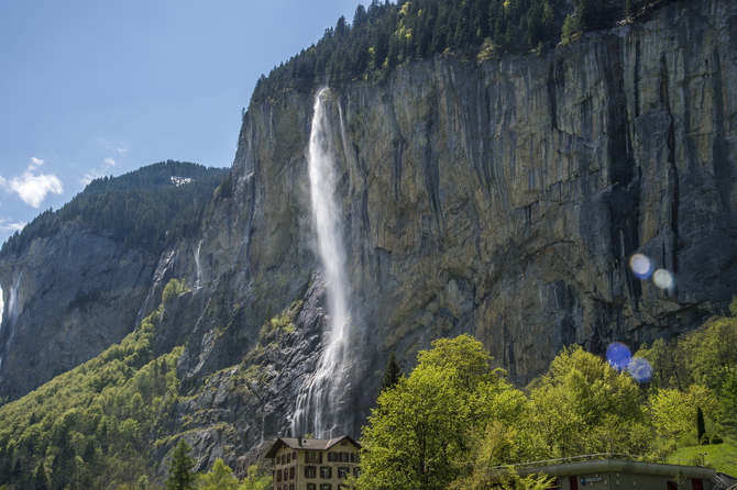 라우터부룬넨 지명에는 시끄러운 폭포라는 뜻을 내포하고 있다. 많을 때는 빙하에서 내려오는 72개의 폭포를 발견할 수 있다고 한다. 그 중 트람멜바흐 폭포의 경우는 그 시원함이 장관이지만 따로 입장료를 내고 들어가야 한다. 스타우바흐 폭포는 외부에서 쉽게 보이는 폭포이다. 입장료 없이 그냥 갈 수 볼 수 있다.