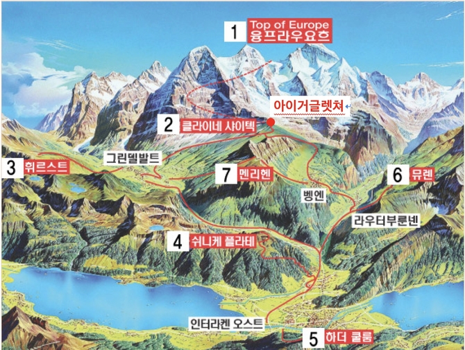 융프라우 지역 관광은 1박 2일을 짧은 편이다. 그래도 3~4일 정도는 있어야 산악열차로 각 거점 지역들을 다니면서 관광도 하고, 액티비티 체험도 할 수 있다. 겨울에는 스키여행을 다른 계절에는 트레킹을 하기에 좋다. 관광과 체험 거기에 트레킹까지 할 계획을 가지고 온다면 좀 더 긴 일정을 고려해야 한다. 그냥 몇일 관광만 하러 왔다가, 맑은 공기와 굽이 굽이 펼쳐진 풍경을 바라보고 나면 이 지역 트레킹 코스를 걷고 싶어질 것이다.