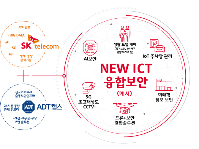 박정호 SK텔레콤 사장은 “보안 시장은 구글·아마존과 같은 글로벌 ICT 기업과 경쟁하는 4차 산업혁명 전쟁터”라며 “영상보안기술·AI·IoT·빅데이터·5G 등 New ICT를 ADT캡스에 도입해 본격적인 시너지 창출에 나설 것”이라고 밝혔다.