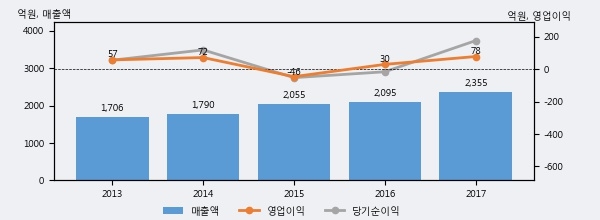 최근 3년간의 실적을 살펴보면 안정적 성장세를 보이고 있다. 최근 3년간 매출로 볼 때 매년 꾸준히 증가하고 있고 그 증가폭도 확대되고 있다.