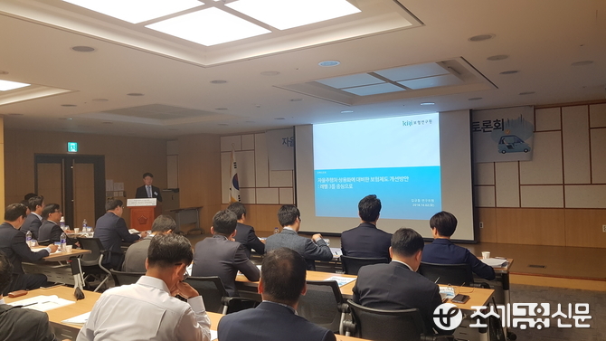 2일 서울 영등포구 국회 의원회관에서 개최된 ‘자율주행차 도입을 위한 보험제도 개선방안’ 정책토론회에서 김규동 보험연구원 연구위원은 ‘자율주행차 상용화에 대비한 보험제도 개선방안’을 주제로 발표를 진행했다.