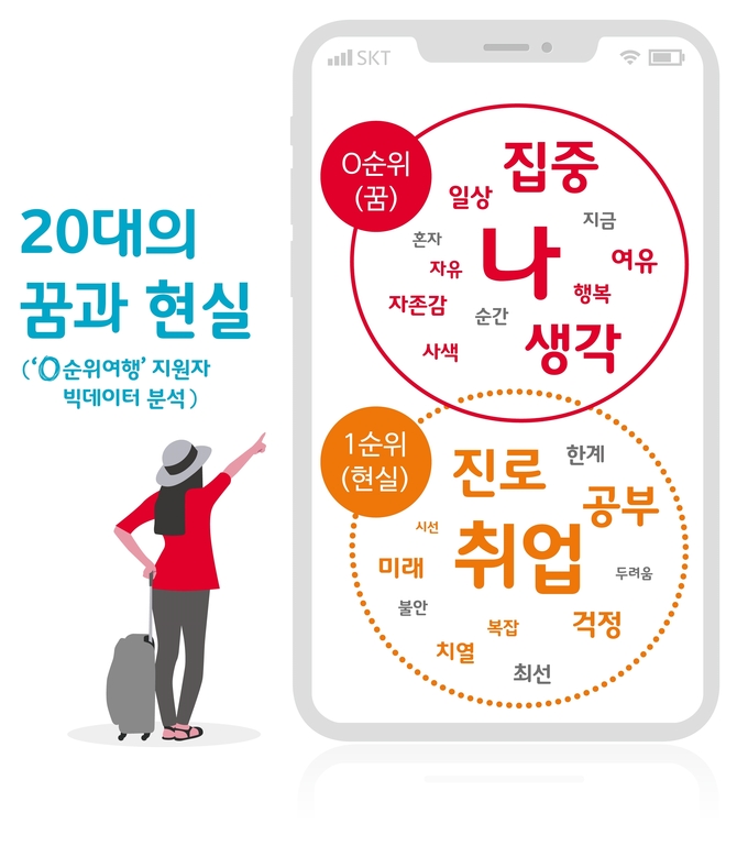 한편, SK텔레콤의 지원서 분석 결과 20대가 꿈꾸는 영 순위여행 테마는 ‘나로서기(나로서+홀로서기)’인 것으로 나타났다.