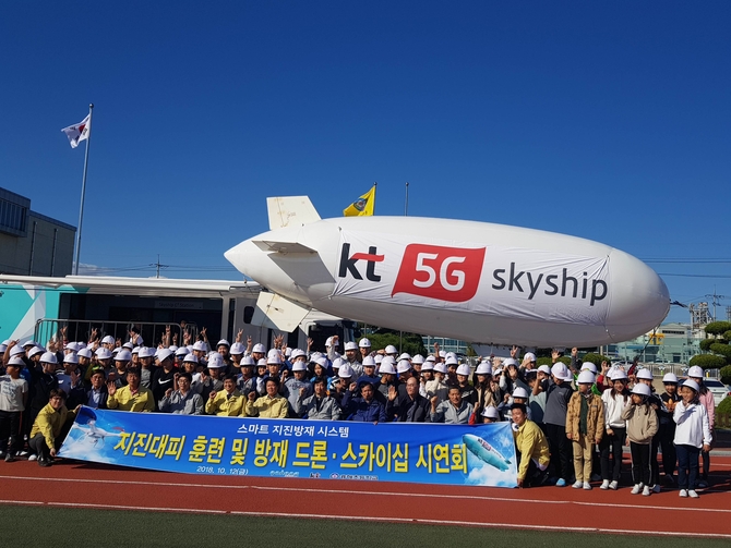 또 KT는 지진 발생 시 드론이나 무인비행체 ‘스카이십(Skyship)’을 현장에 띄워 조난자 여부 등 현장 상황을 확인하고 통신망 두절 시 긴급 복구 인력을 지원한다.