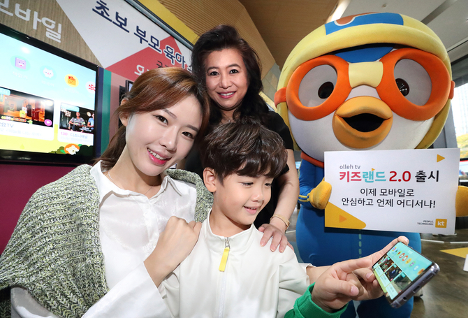 어린이용 앱 ‘키즈랜드 모바일’은 통신사 상관없이 스마트폰 등 모바일 기기에서 이용할 수 있다. 13개의 키즈 채널을 광고 없이 무료로 제공하고 KT 고객에게는 VOD 1만편을 추가로 제공한다. 유해 콘텐츠도 차단해 유튜브와 차별화를 꾀했다.