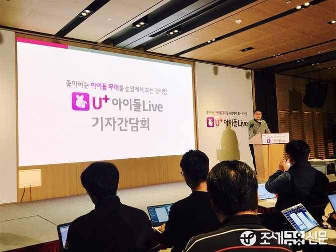 LG유플러스는 18일 오전 서울 용산사옥에서 기자간담회를 열고 모바일 동영상 서비스 ‘U+ 아이돌 라이브’를 출시한다고 밝혔다. 앞서 선보인 ‘U+ 프로야구’, ‘U+ 골프’ 등이 30대 이상 성인층을 타깃으로 했다면 U+ 아이돌 라이브는 10~20대를 집중적으로 공략한다는 방침이다.