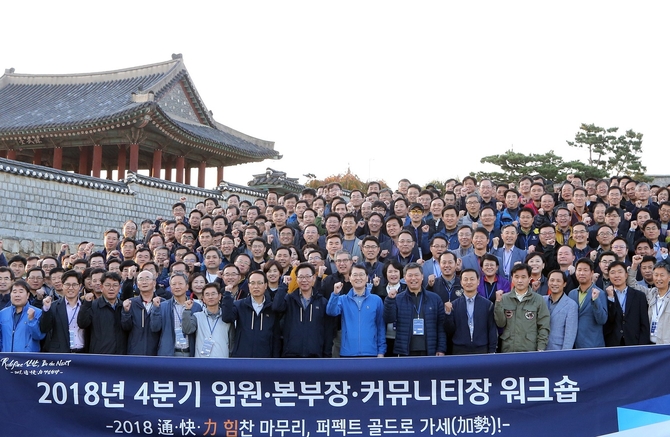 지난 19일 위성호 신한은행장을 비롯한 임원, 본부장, 커뮤니티장, 주요 부서장 등 230여 명은 경기도 용인시 기흥구 소재 연수원에서 ‘2018년 4분기 워크숍’을 실시했다.