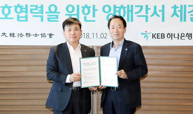 (조세금융신문=이기욱 기자) KEB하나은행이 2일 양질의 법무서비스를 고객에게 제공하기 위해 대한법무사협회와 상호 업무협약을 체결했다.