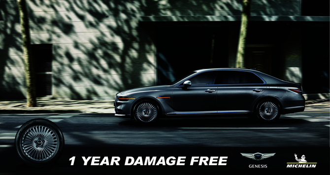대미지 프리 서비스는 제네시스 고객이 미쉐린 타이어를 신규 구매할 경우 1년간 타이어와 관련된 손상에 대해 무상 교환 혜택을 제공해주는 서비스다.