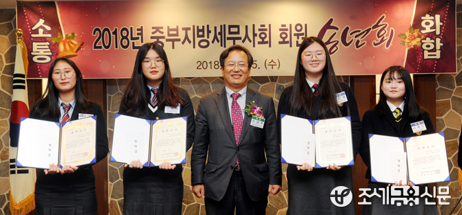 중부세무사회는 또 인천세무고등학교와 경기세무고등학교 학생들에게 장학금과 장학증서를 전달했다. 이날 전달한 장학금은 이금주 중부세무사회장과 김석동 인천지역회장, 조영문 남인천지역회장, 옥승찬 북인천지역회장, 구현근 서인천지역회장, 배상윤 김포지역회장, 오형철 부천지역회장, 김준식 파주지역회장이 십시일반으로 기금을 조성해 전달됐다.
