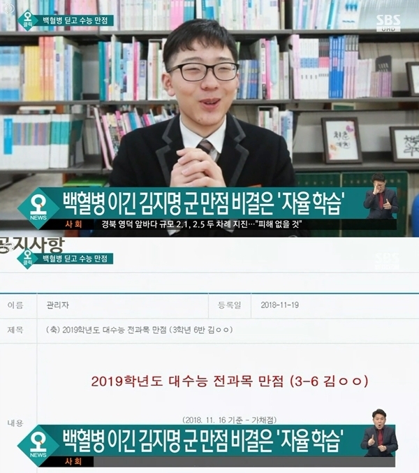 지난 5일 2019 대학수학능력시험(이하 수능)의 만점자로 밝혀진 김지명 군은 유년 시절부터 청소년 시기까지 백혈병을 투병했던 것으로 알려져 많은 이들을 놀라게 했다.
