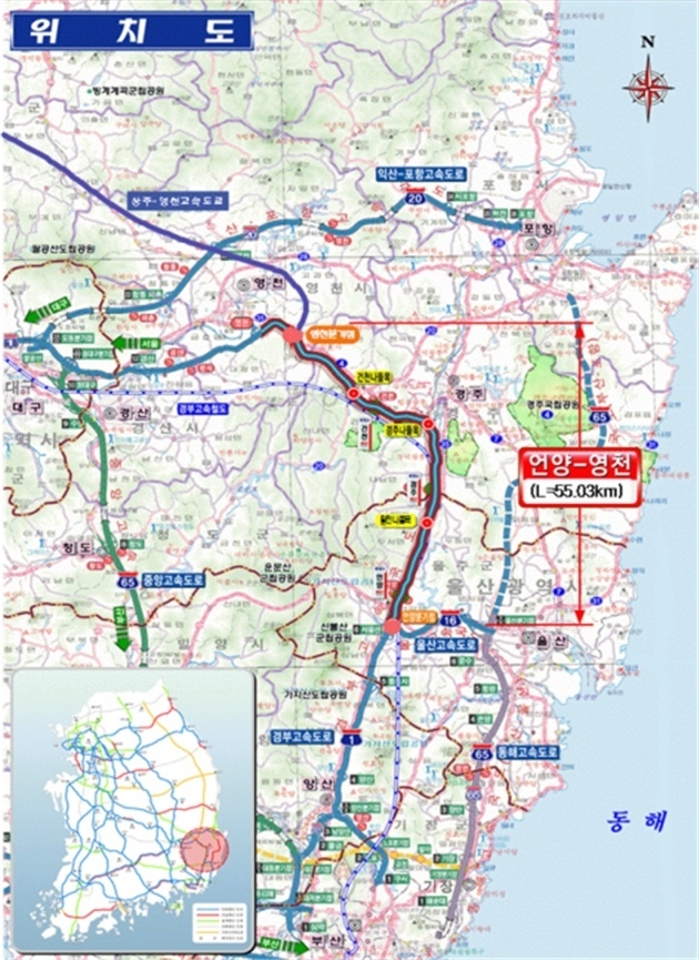 (조세금융신문=이정욱 기자) 경부고속도로 울산시 울주군 언양읍에서 경북 영천시를 잇는 언양∼영천 구간(55㎞)이 확장공사를 마치고 개통한다.