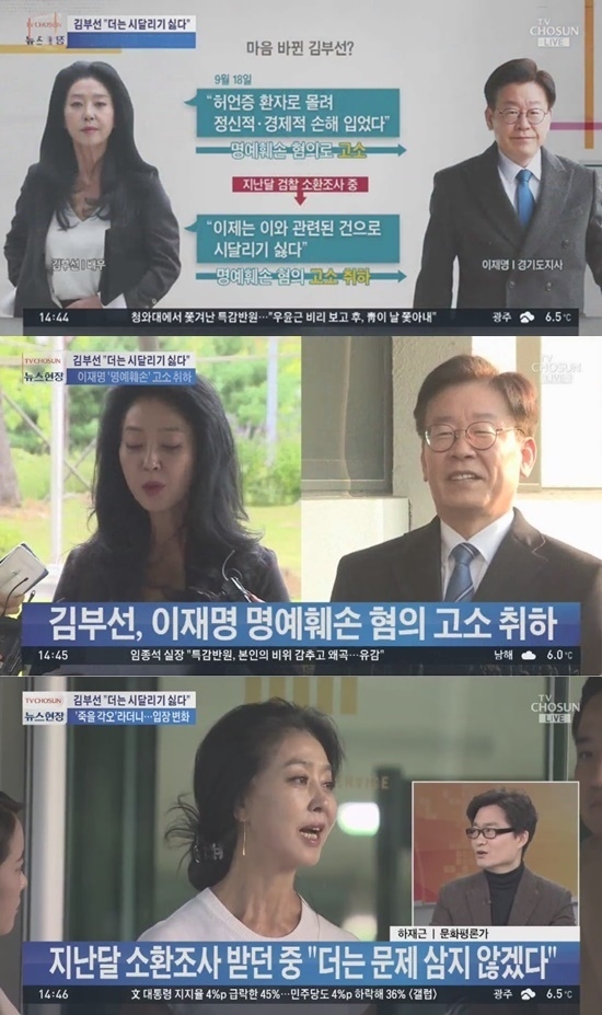 (조세금융신문=김효진 기자) 배우 김부선이 이재명 경기도지사를 상대로 한 명예훼손 고소를 취하하기로 함에 따라 사건은 공소권없음으로 결론났다.
