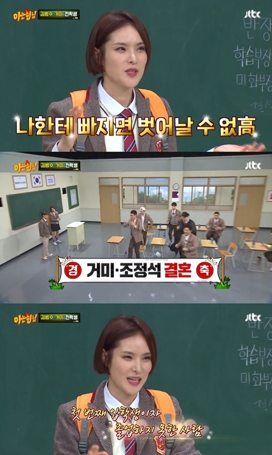 15일 방송된 JTBC '아는 형님'에 출연한 그녀는 아형 멤버들의 결혼 축하게 수줍은 듯 미소를 보였지만, 짓궂은 농담에도 능청스러운 모습을 뽐내며 시청자들의 웃음을 자아냈다.