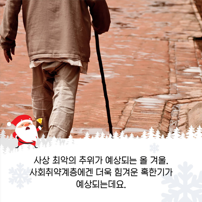 사상 최악의 추위가 예상되는 올 겨울. 사회취약계층에겐 더욱 힘겨운 혹한기가 예상되는데요.