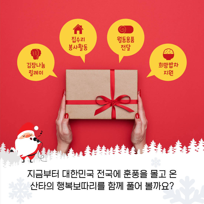 지금부터 대한민국 전국에 훈풍을 몰고 온 산타의 행복보따리를 함께 풀어 볼까요?