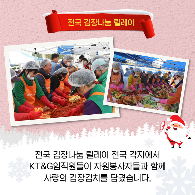 전국 각지에서 KT&G임직원들이 자원봉사자들과 함께 사랑의 김장김치를 담궜습니다.