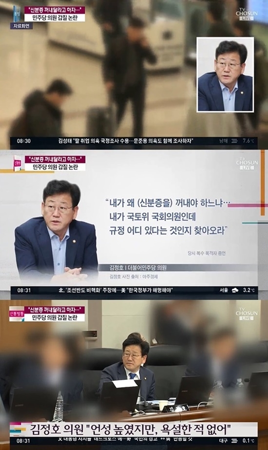 지갑에 끼여있던 신분증을 꺼내달라는 직원의 요구에 김정호 의원은 책임자를 찾으며 고함을 질렀다.