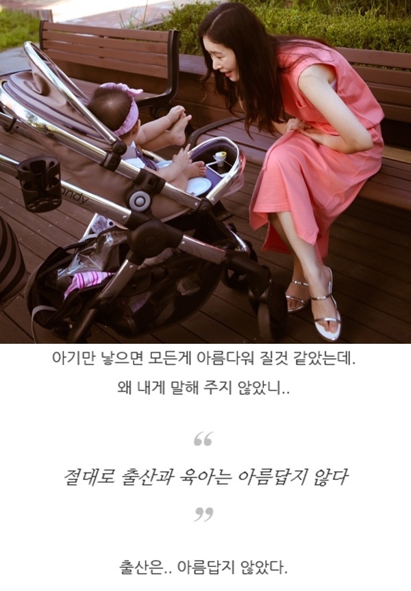 그러나 그녀는 자신의 블로그에 "출산 후 왜 이런 건 나에게 얘기해주지 않았을까 싶은 게 하나 둘이 아니다"라며 "출산은 아름답지 않았다. 본능적이지만 창피할 겨를 없는 낯선 일들의 향연이었다"라며 '엄마'의 삶에 대한 소회를 털어놓기도 했다.