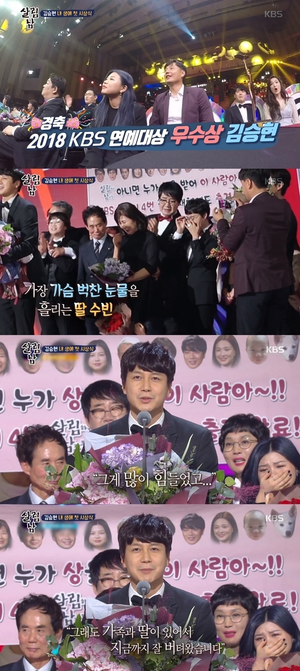 26일 방송된 KBS2 '살림하는 남자들 시즌2'에서는 배우 김승현이 생애 첫 시상식 참석으로 수상의 영광을 안는 모습이 그려졌다.