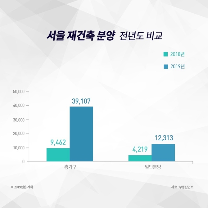 3일 부동산인포에 따르면 연내 서울에서 재건축 정비사업을 통해 일반분양 되는 물량은 지난해 4219가구 대비 약 3배 증가한 1만2313가구로 조사됐다.