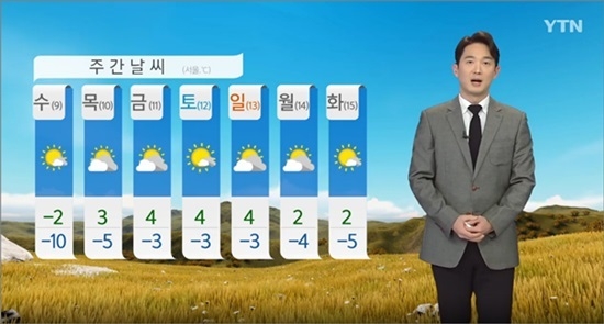 그러나 모레(9일)부터 다시 영하 10도 이하로 떨어질 것으로 보인다. 그 밖의 지역에서도 찬 공기가 유입되면서 모레 아침 기온은 대부분 영하권에 들겠고, 특히, 중부내륙은 영하 10도 내외로 떨어지겠다.