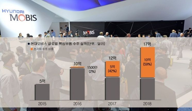 현대모비스가 해외 전기차 업체에 핵심부품 수주를 따낸 것은 2016년이 처음으로 당시 1500만 달러를 기록했다가 2017년 5억 달러, 지난해 10억 달러 등으로 크게 늘었다.