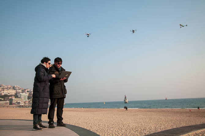 해운대에서 LTE 신호를 받는 3기의 드론이 지정된 경로를 자율 비행하며 고도 10~20m 높이에서 지상을 관측하고 스튜디오에 연동된 영상인식 소프트웨어가 조난자의 위치를 확인하는 방식이다.