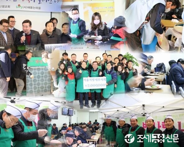 (조세금융신문=이지한 기자) 임채룡 서울지방세무사회장을 비롯한 서울회 임직원은 민족 고유의 명절인 설날을 맞아 29일 서울역에 위치한 ‘사단법인 해돋는 마을’에서 노숙자 및 60세 이상 어르신 150여분에게 따뜻한 밥 한끼를 대접하는 사랑의 밥퍼 봉사활동을 실시했다.