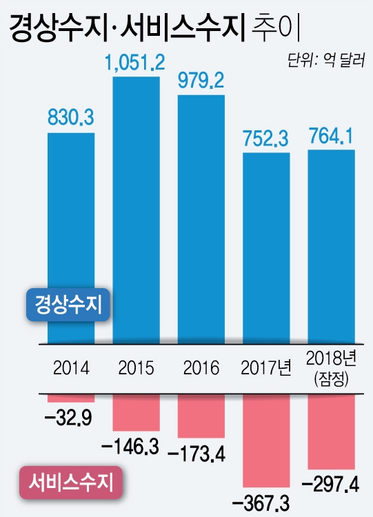 서비스수지는 역대 두번째로 적자 폭이 컸다. 사드(THAAD·고고도미사일방어체계) 보복 조치에 따른 중국인 관광객 감소 충격에서 회복되는 속도가 더딘 탓이다.