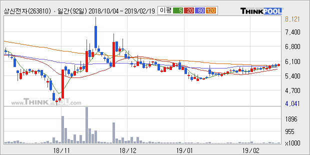 상신전자의 2017년 매출액은 전년대비 17.9% 늘어난 850억원이고, 영업이익은 전년대비 -8.0% 줄어든 61억원을 기록했다. 이 회사의 매출액 증감률과 영업이익 증감률은 각각 코스닥 상위 32%, 하위 45%에 해당된다.